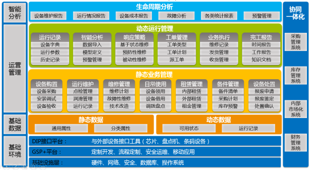针对矿业集团统一的设备管理研发,实现了设备全生命周期管理,包括设备采购管理、设备台帐管理、运行使用管理、设备修改管理、技术改造管理、单体柱管理、低值易耗设备台帐管理、设备租赁管理、设备清查管理、设备让售管理、设备闲置管理、设备报废管理、设备效益分析等功能。以设备运行历史及台帐为基础,以业务的提交、审批、执行为主线,以设备卡片信息为载体,以设备台帐管理为核心,实现设备的实物管理与价值管理的统一,达到设备的业务处理、业务监控和财务核算、财务监控的一体化;顺利获得物联网技术、与设备自动化集控系统集成等实现设备智能化管理,有助于由传统的被动维修转变为主动维修、预防式维修转变。
