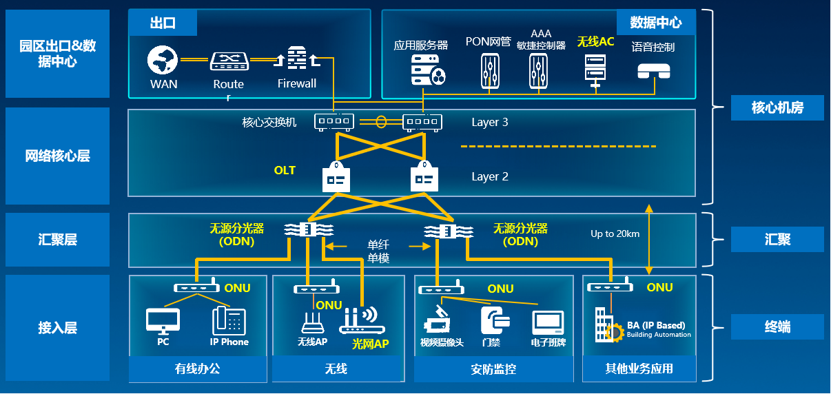 ■澳门十大棋牌排行榜最新■全光网顺利获得各种形态的ONU设备给予有线网络接入,顺利获得室内、高密、室外、面板等各种型号AP和光AP为楼内用户给予无线网络接入
