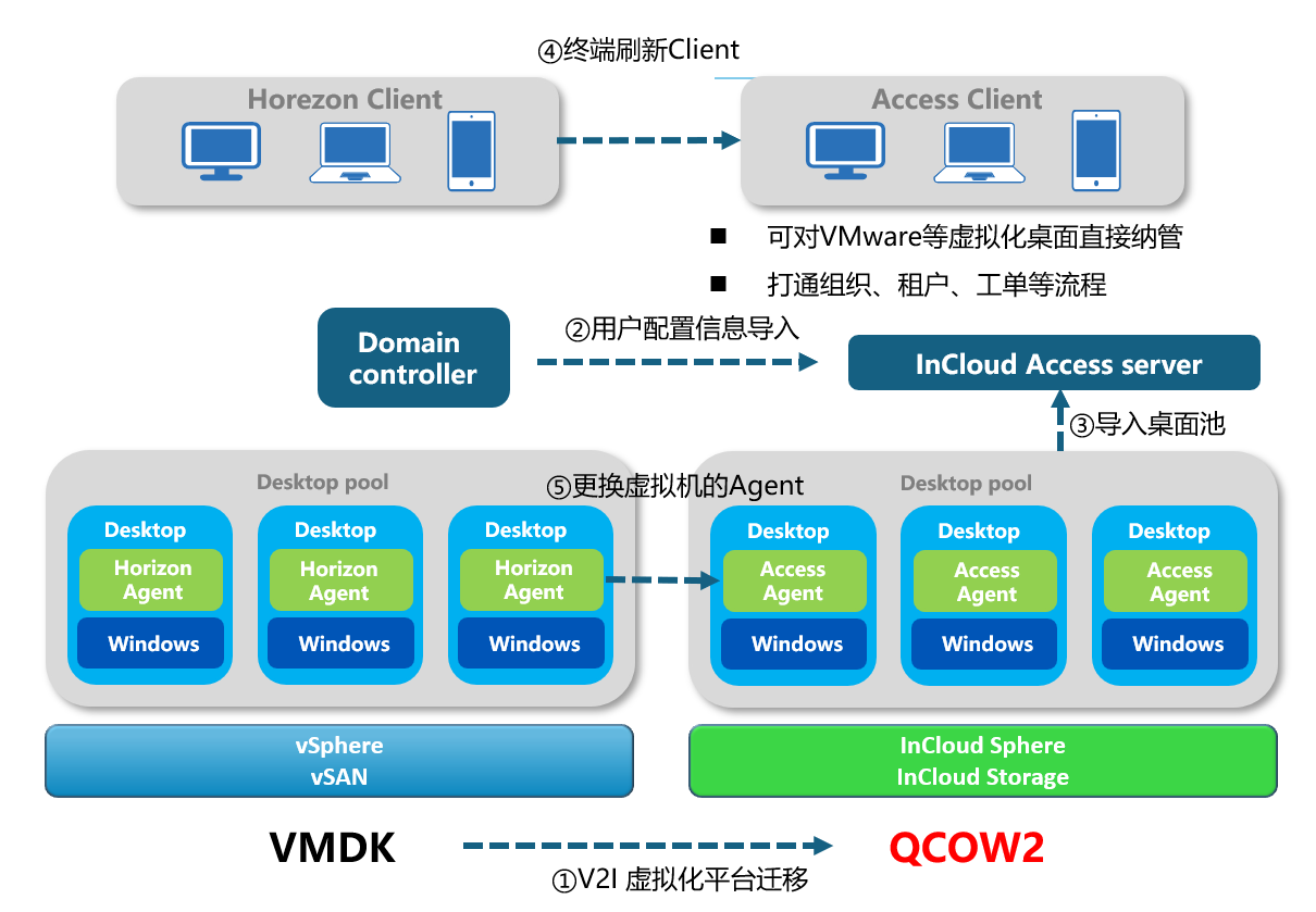 ■澳门十大棋牌排行榜最新■云海桌面云给予标准化、工具化的迁移流程,旨在实现从VMware Horizon到InCloud Access的平滑过渡。顺利获得 “虚拟机格式转换-用户数据与身份迁移-桌面池配置与发布-终端适配与升级-Agent替换”五步,实现 “业务不中断、数据不丢失、安全不降级”,每一步均配备专属工具与验证机制,降低迁移门槛。